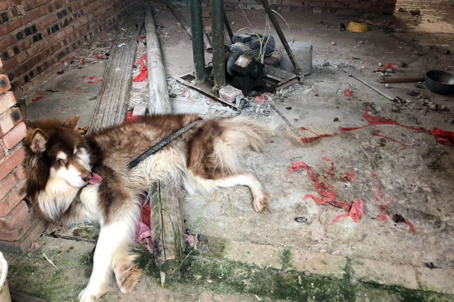 "Onze oprichter Michael Chour sluit een hondenslachthuis in Cambodja in de stad Kampong. Na veel onderhandelen en overleg, heeft de slachter besloten te stoppen met het slachten van honden. Voor Michael daar aankwam werden er nog veel honden geslacht, maar gelukkig is dit nu voorbij. Michael heeft de eigenaar geholpen met het opzetten van een winkeltje in frisdranken en andere voedingswaren. Maar wij moeten hem blijven steunen, zodat hij niet weer een hondenslachterij gaat beginnen. Educatie, liefde en begrip hebben uit deze hel een weg gebaand naar een goede toekomst! De eigenaar heeft nog drie volwassen honden en zeven pups, alle honden zijn parasieten-vrij en zijn nu op gewicht. Wij gaan elke keer controle doen en voer brengen."