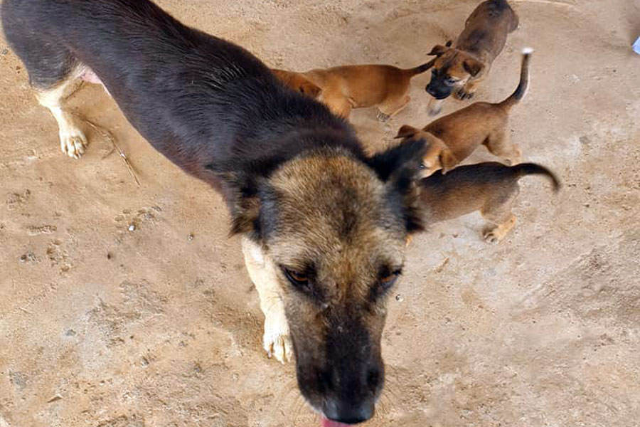 Ze werd met een voorwerp in haar gezicht geslagen en, vastgebonden aan een hek in Montebello, bloedend achtergelaten. We maakten haar los en namen haar mee naar de nood-arts, waar ze werd behandeld voor de wonden in haar snuit en voor een gebroken kaak. Toen ze uit het hospitaal weg mocht, werd ze verzorgd in een pleeggezin, waar ze herstelde van haar wonden. Vandaag, vroeg in de middag, beviel ze, zonder dat we dat hadden verwacht, van 3 gezonde hondjes. Wat krijgen we toch soms geweldige nieuwe kansen! Zij vond een nieuwe liefde om voor te leven. En ze is een geweldige moeder, je zou moeten zien met hoeveel toewijding ze haar jongen verzorgt! Onze dank gaat uit naar onze vrijwilligster Linda Z., die haar huis openstelde voor Kaylen en zorg droeg voor de baby-hondjes. |